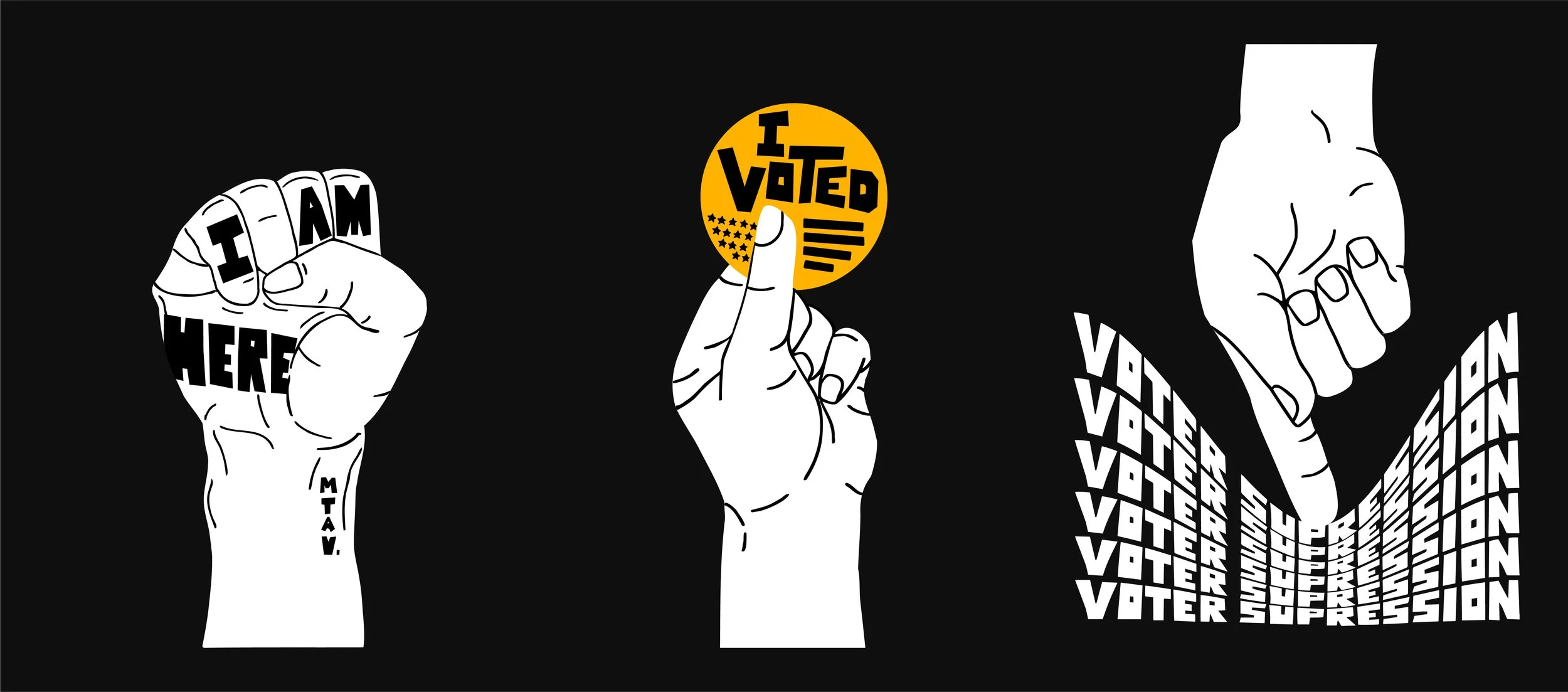 The hand points, leads or commands. The hand gives us a voice. The hand counts us among others. The hand can cry out in agony. The hands clap, bringing attention to something important. The hands symbolize cultural behaviors, values and beliefs, but most importantly, the hand says: I’m here. By using a raised hand as our symbol for MTAV, we want to represent the suppressed.